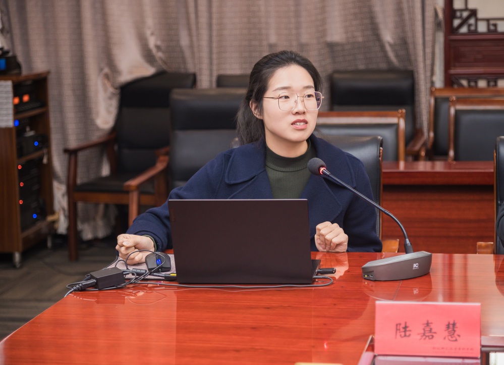 会议期间,邀请了2025年江苏省高校思政课教学展示活动一等奖获得者、江苏航运职业技术学院的陆嘉慧老师分享备赛和参赛经验。她从规则研读、材料打磨、读书储备、现场展示四个维度进行了分享。